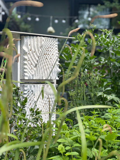 Rather than standalone bee hotels, Apia helps create pollinator friendly architectural feature walls that can be installed in urban landscapes, gardens, roofs, and terraces.